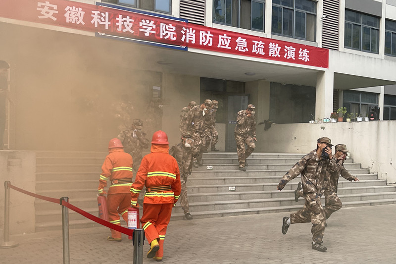 为认真贯彻落实《高等学校消防安全管理规定》,全面提高我校师生消防安全意识和应对火灾等突发事件的应急反应能力,9月21日、22日下午分别在凤阳校区和龙湖校区举行消防灭火演练和消防应急疏散演练。2023级全体新生、军训团全体教官、凤阳县消防大队以及保卫处、学生处、后勤保障部和各学院分管学生工作的副书记参加演练。演练由保卫处消防科科长刘宇航主持。