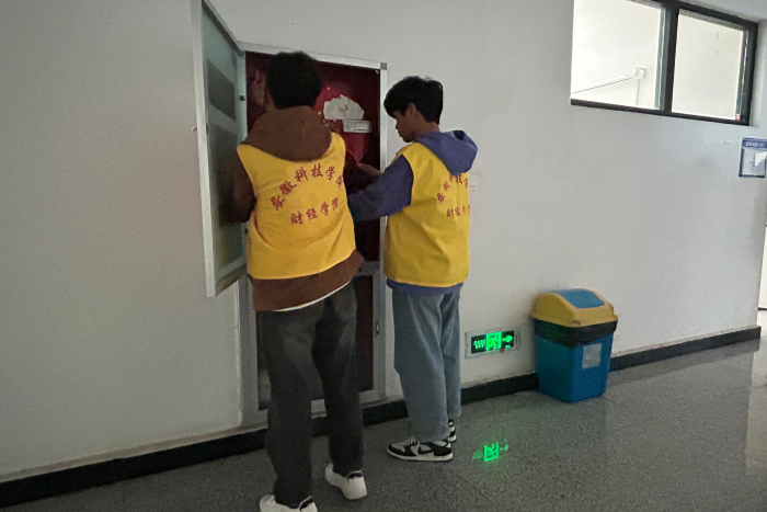 此次活动的重点是对教学楼的消防用具及其电力设施展开细致全面的检查。在对消防用具的检查中,同学们发现了其中存在的问题,例如,部分灭火器的压力不足,部分消防栓的保养不当且存在锈蚀等情况。这些问题的发现和及时上报为教学楼的安全提供了一份有力的保障。通过开展相关实践活动,同学们将奉献精神内化于心,外化于行,也呼吁大家要养成节约用电的好习惯,将用电量控制在合理的范围内。