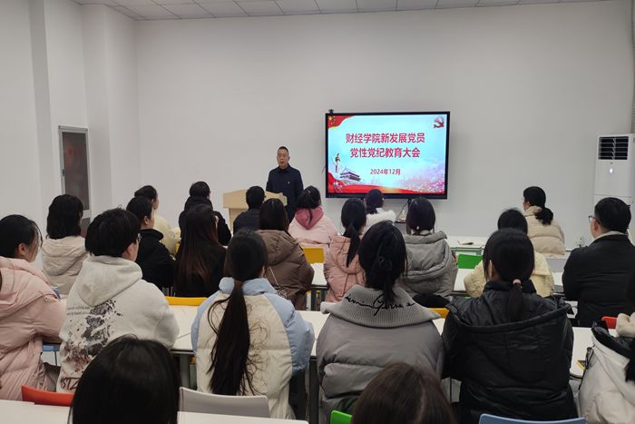为教育引导新发展党员铭记入党初心、坚定理想信念,提高纪律意识,筑牢思想防线,12月24日,财经学院在“一站式”学生社区党团工作室召开新发展党员党性党纪学习教育大会。学院各学生党支部书记、新发展学生党员参加会议,学院党委副书记、纪委书记耿广汉出席。大会由学院党政办主任张俊主持。