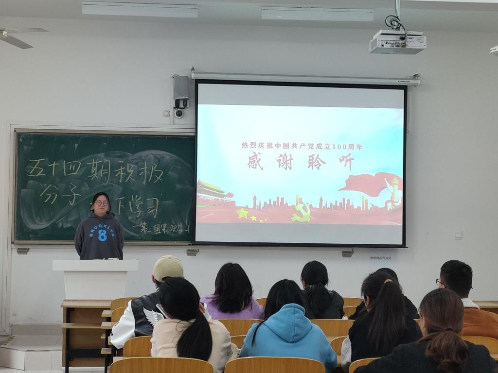 经贸学生党支部本期积极分子共有139人,分成五组进行学习,每组安排两名学生党员进行指导。学员们重点学习了习近平总书记在党史学习教育动员大会上的重要讲话精神,深刻领会讲话精神内涵实质和开展党史学习教育的重大意义。支部党员领学了《中国共产党简史》部分章节内容,进一步帮助学员了解中国共产党自1921年成立以来,为寻求民族独立和人民解放,实现国家繁荣富强和人民共同富裕,走过的百年艰辛而又辉煌的历程!
