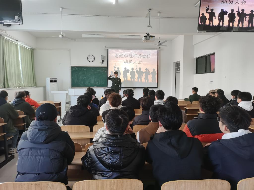 财经学院高度重视征兵工作,顺利完成了本年度的征兵任务。本次征兵宣传动员大会,激发了学院学子投身军营、建功立业的热情和信心,为学院下一步推进征兵工作打下坚实基础。(特约通讯员:朱中军 摄影:王天云 审核:耿广汉)