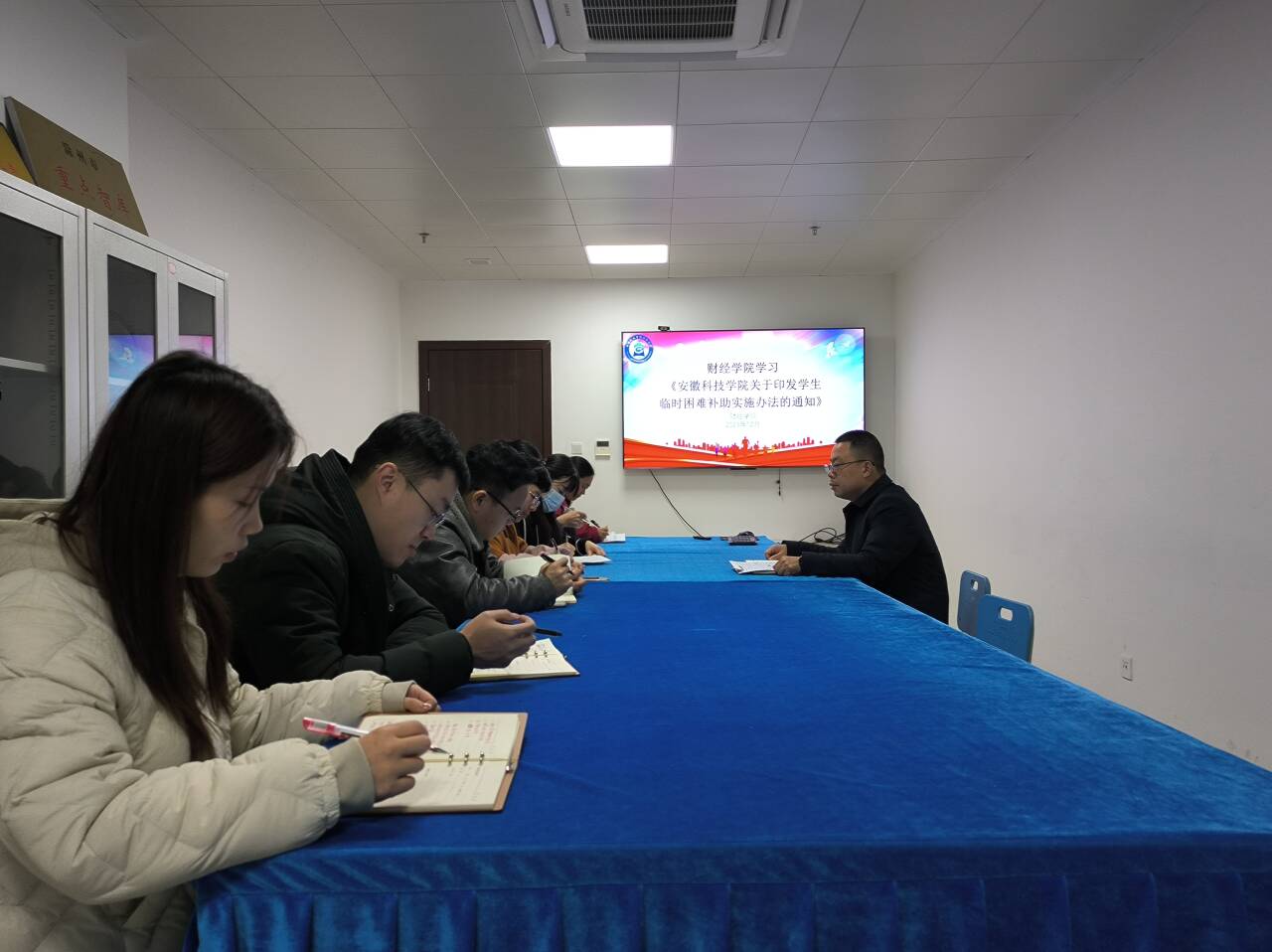 为进一步加强学生资助管理,提升资助工作水平,提高精准资助能力,规范学生临时困难补助工作流程,12月4日上午,财经学院在西辅楼212会议室组织辅导员学习《必一体育平台_必一体育平台(中国)股份有限公司关于印发学生临时困难补助实施办法的通知》。财经学院党委副书记耿广汉以及学院全体专职辅导员老师参会。
