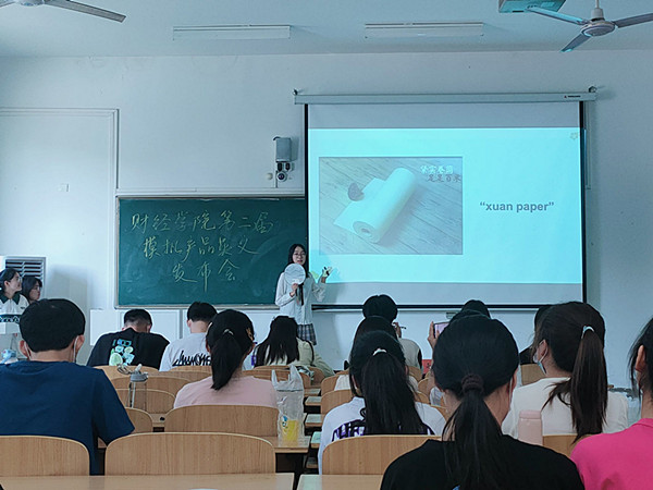 为切实提高学生专业技能和综合素质,5月4日下午,财经学院在致知楼A106成功举办第二届模拟产品英文发布会。安徽省大学生国贸技能大赛获奖队伍负责人柏孝宇、院社团管理部主席陆子涵、大学生创业协会会长郝宁、会计学习与交流协会会长武文君、数学学习与交流协会会长汪雨婷担任比赛评委。学院团委书记薛枫全程观看、指导比赛。
