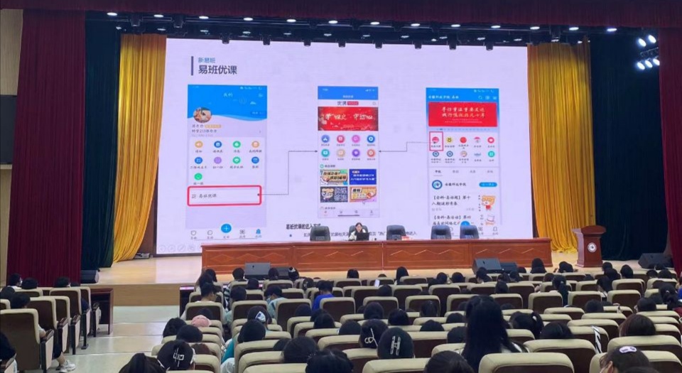 蒋丹丹首先向全体新生介绍了学院易班建设的现状、创新举措与所取得的成效。他表示,财经学院易班建设始终坚持以“引得来学生关注、留得下学生驻足、走得进学生心里、记得下成长轨迹、育得了时代新人、积得下样板经验”为目标,以“思想建设、服务管理、学习拓展、活动搭建”为抓手,积极探索易班网络育人的特色做法。随后,她结合教育部易班发展中心新出品的《易班APPv5.0产品手册》,全面细致的演示了易班各个功能模块的操作方法。她强调,每位新生都要高质量完成易班优课新生入学教育课群视频学习,高标准完成在线考试,将易班平台当成了解大学、适应大学的“好助手”。