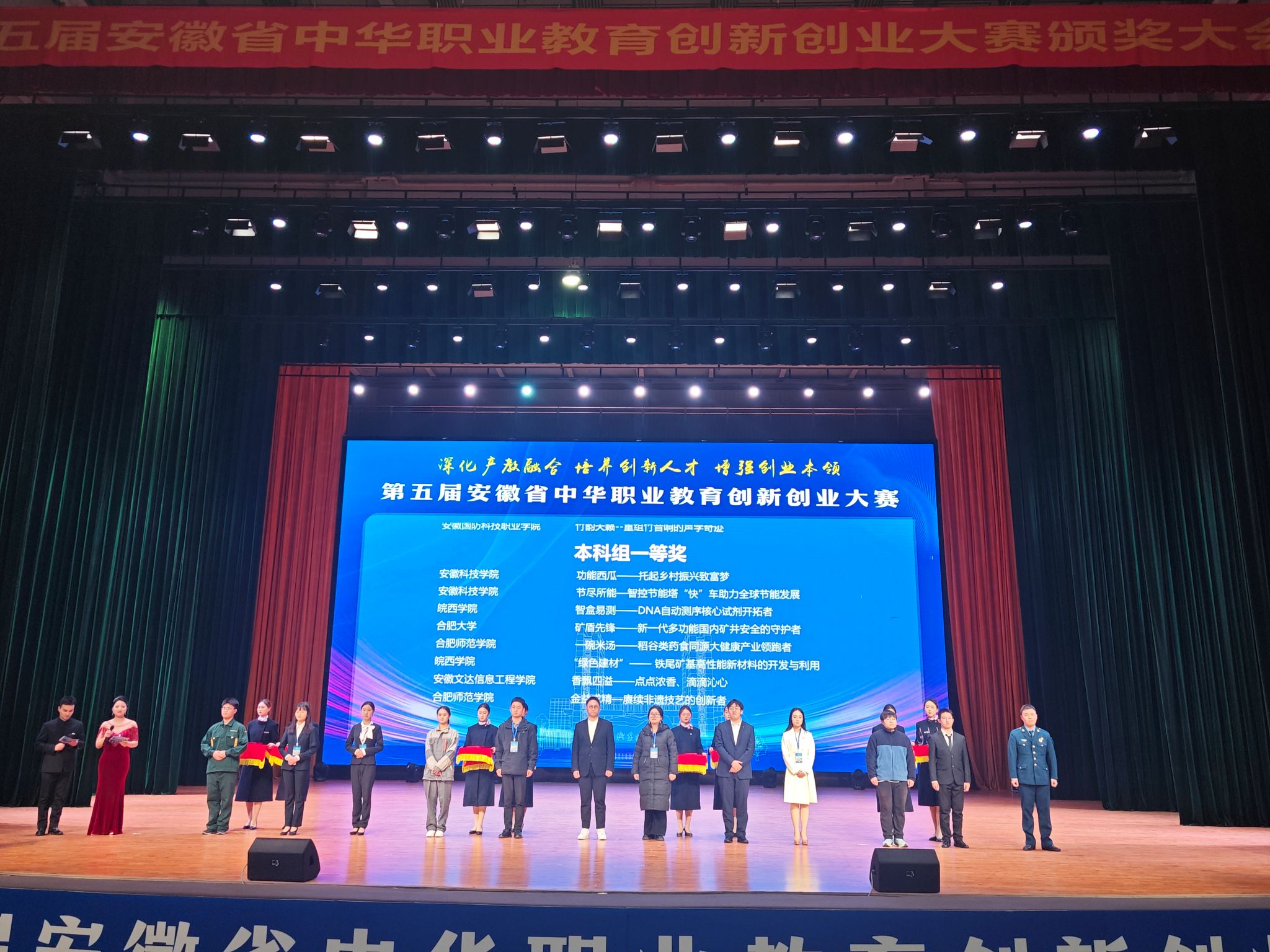 12月16日至17日,由安徽省中华职业教育社、安徽省教育厅、安徽省人力资源和社会保障厅、安徽省总工会主办,阜阳职业技术学院承办的第五届安徽省中华职业教育创新创业大赛决赛圆满落幕。