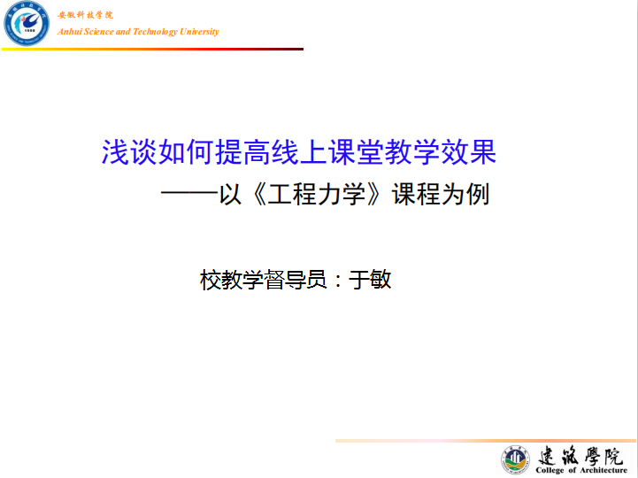 启动仪式后,校教学督导员,建筑学院副教授于敏作了题为《浅谈如何提高线上课堂教学效果——以《工程力学》课程为例》的首场教学专题讲座。(特约通讯员:张杰 审核:程斌)