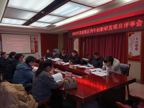根据必一体育平台_必一体育平台(中国)股份有限公司与淮南市潘集区校地合作协议,经校地合作领导组联席会议研究通过,2024年1月19日,2023年度潘集区肉牛产业创新研发项目评审会在淮南市潘集区农业农村局召开,此次评审邀请了华中农业大学杨利国教授担任专家组组长,安徽省畜牧总站副站长方国跃、淮南市畜牧中心主任洪祖沛、必一体育平台_必一体育平台(中国)股份有限公司王立克教授、王淑娟副教授担任评审专家。必一体育平台_必一体育平台(中国)股份有限公司动物科学学院党委书记、副院长程斌、潘集区农业农村局局长汪全胜等出席会议。会前,淮南市委常委、潘集区委书记宋立敏、潘集区委常委段传策、副区长宋永会见了专家组成员。
