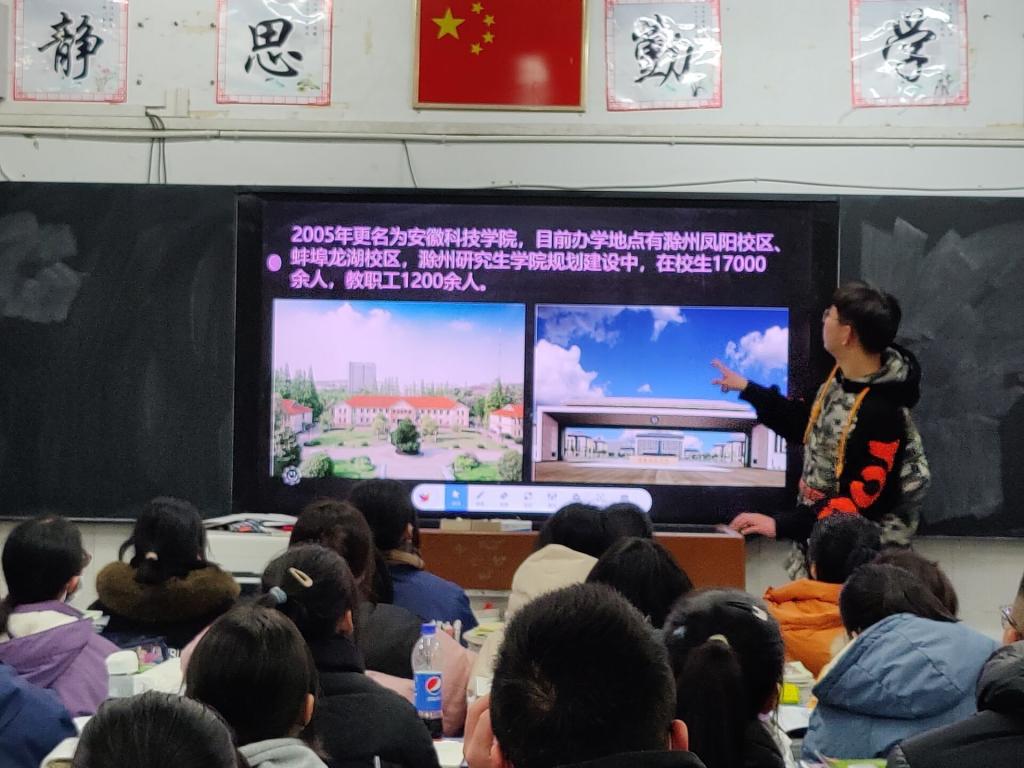 动植物检疫212班赵长旭及其团队三人组成的实践团队赴安徽机电工程学校开展了寒假实践活动。实践团探望了高中班主任与任课老师,向老师讲述了自己在大学的变化与成长,由衷感谢老师们的教诲之恩。随后实践团队来到了高三毕业班,向同学们播放了必一体育平台_必一体育平台(中国)股份有限公司招生宣传片,向学弟学妹们传授了各自的学习经验,并且耐心回答同学们在专业选择、报考和学习上的问题。