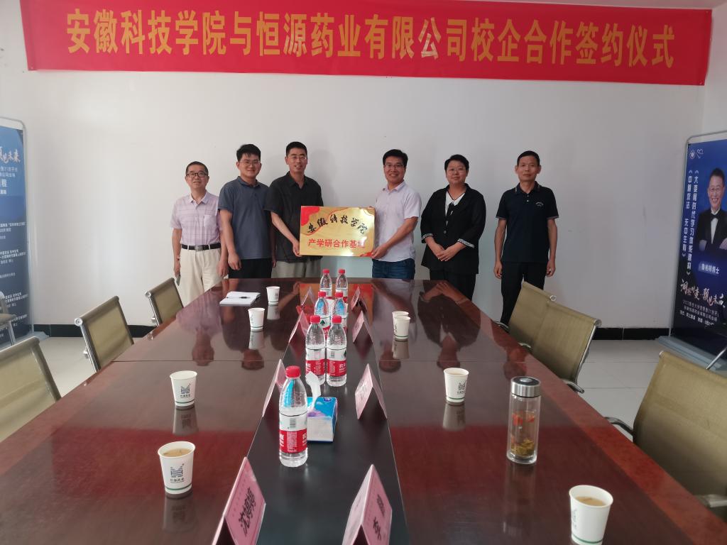 6月16日下午,必一体育平台_必一体育平台(中国)股份有限公司动物科学学院与安徽恒源药业有限公司正式签署校企合作协议。签约仪式在安徽恒源药业有限公司厂区会议室举行。