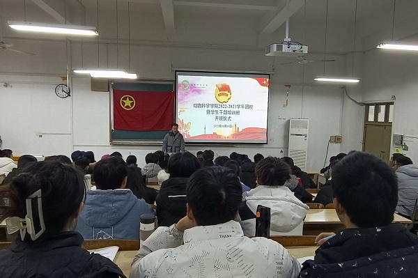 培训会前,举办了开班仪式,动物科学学院党委副书记、纪委书记汤帅要求全体学员把学习贯彻党的二十大精神作为当前的首要政治任务,通过培训班的学习坚定理想信念、练就过硬本领、勇于担当使命。学院党政办公室主任、团委书记李焱鼓励大家要努力成长为用习近平新时代中国特色社会主义思想武装头脑的青年马克思主义者。辅导员范雨梦传达了学生干部培训班的通知。(特约通讯员:李焱 摄影:赵长旭 审核:汤帅)