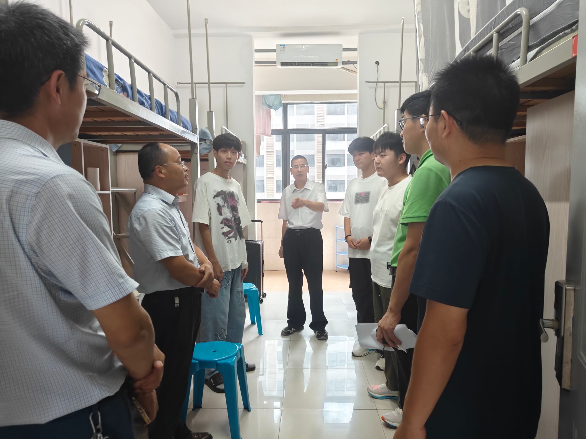 9月7日下午,学院党政领导带领新生辅导员走访新生宿舍,向新生传达亲切问候,鼓励大家尽快转变角色,学会独立、加强团结、立志高远,以积极心态迎接大学生活。在与部分新生家长亲切交谈中,耐心解答家长关心的问题。此次宿舍走访不仅传递了学院对新生的关怀与重视,也搭建了师生之间温暖的沟通桥梁,进一步增强了新生对学院的认同感与归属感。(特约通讯员:陈更强 摄影:徐嘉鑫 审核:尚磊 骆海邦)