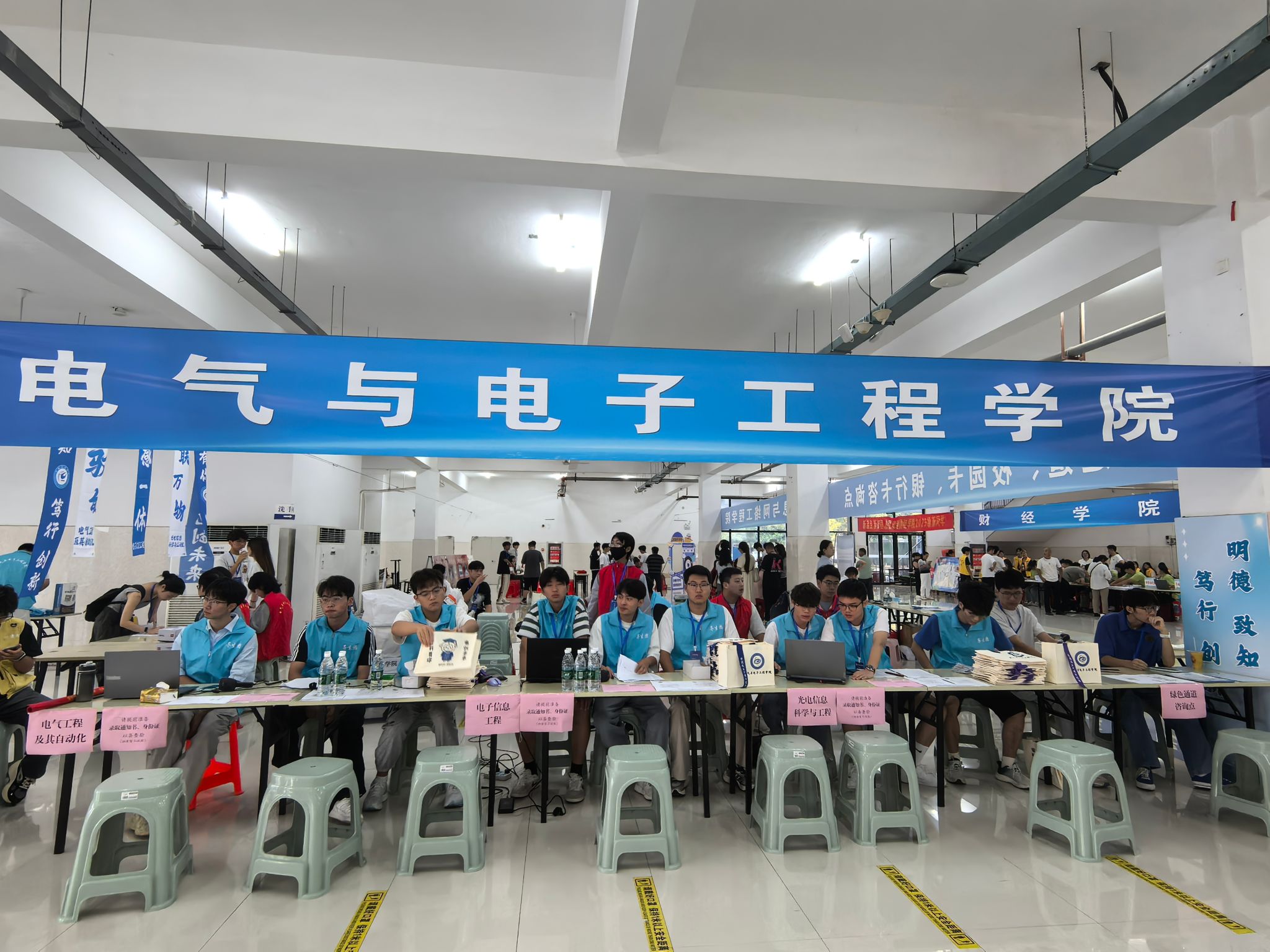 清晨六点,电气与电子工程学院的各学生组织成员与志愿者已整装待发。他们身着统一的志愿服装,穿梭在校园的各个角落,成为迎新现场一道亮丽的风景线。从校门口热情引导,到检录处有条不紊地为新生办理报到手续,再到宿舍区干劲十足地帮新生搬运行李。志愿者的无私奉献,不仅是对“团结、奉献、有爱、互助”精神内核的精彩演绎,更为新生的大学初体验增添了满是温情的色彩。