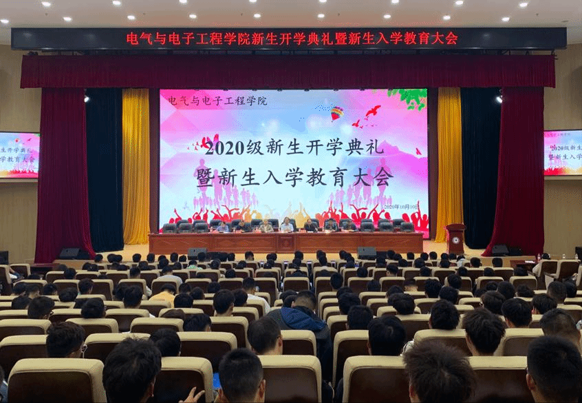 10月10日下午,电气与电子工程学院2020级新生开学典礼暨新生入学教育大会在龙湖校区东辅楼二楼报告厅隆重举行。院长章毛连、党总支书记张盛、党总支副书记尚磊、院长助理国海及各系主任出席,全体辅导员及2020级全体新生参加会议。会议由尚磊主持。