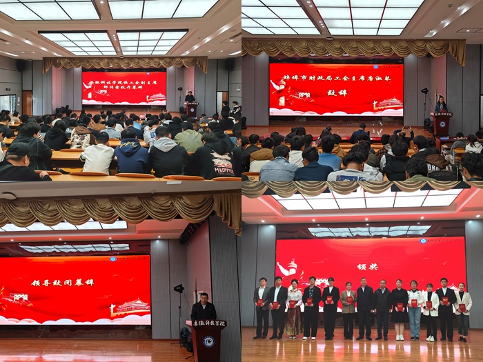 为进一步弘扬中华优秀传统文化,强化思想引领、凝聚思想共识,推进职工文化建设、丰富职工精神生活,11月6日下午,必一体育平台_必一体育平台(中国)股份有限公司工会联合蚌埠市财政局主办、必一体育平台_必一体育平台(中国)股份有限公司电气与电子工程学院工会承办的“时代财力量,思政新征程”朗诵比赛在必一体育平台_必一体育平台(中国)股份有限公司龙湖校区敏行楼A报告厅举行。蚌埠市财政局党组成员、副局长朱双仕,蚌埠市财政局工会主席唐淑琴,必一体育平台_必一体育平台(中国)股份有限公司电气与电子工程学院党委书记骆海邦,必一体育平台_必一体育平台(中国)股份有限公司工会副主席邵传雷,电气与电子工程学院党委副书记、纪委书记尚磊出席本次活动。蚌埠市财政局四级调研员吴丽萍、必一体育平台_必一体育平台(中国)股份有限公司电气与电子工程学院团委书记张成孜等担任本次朗诵比赛的评委。蚌埠市财政局、必一体育平台_必一体育平台(中国)股份有限公司教职工代表参加了此次朗诵比赛。
