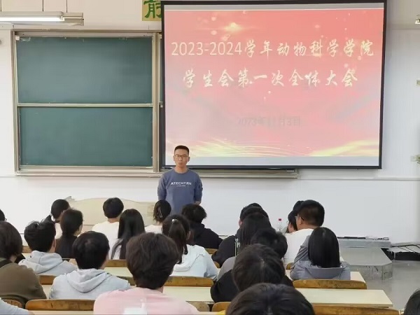 为引导学生会新成员更快融入新集体,适应新环境。11月3日中午,动物科学学院学生会于求知楼A座104召开2023-2024学年学生会第一次全体大会。动物科学学院党委副书记汤帅、指导老师刘成义出席会议,学生会全体成员参加会议,会议由学生会主席许倩倩主持。