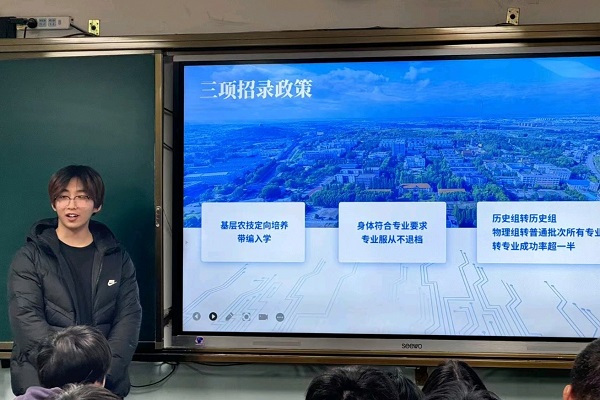 活动伊始,团队成员通过精心制作的PPT,向同学们展示了学校的校园风光、现代化的教学设施以及丰富多彩的校园生活,激发了同学们对大学生活的向往。随后,又从学校的历史沿革、学科专业、师资力量、人才培养、就业创业等方面进行了详细介绍。重点提及了学校在农业、工科等多个领域的特色专业,如动物医学、种子科学与工程等,这些专业凭借深厚的学科底蕴和产学研融合的培养模式,为学生提供广阔的发展空间。