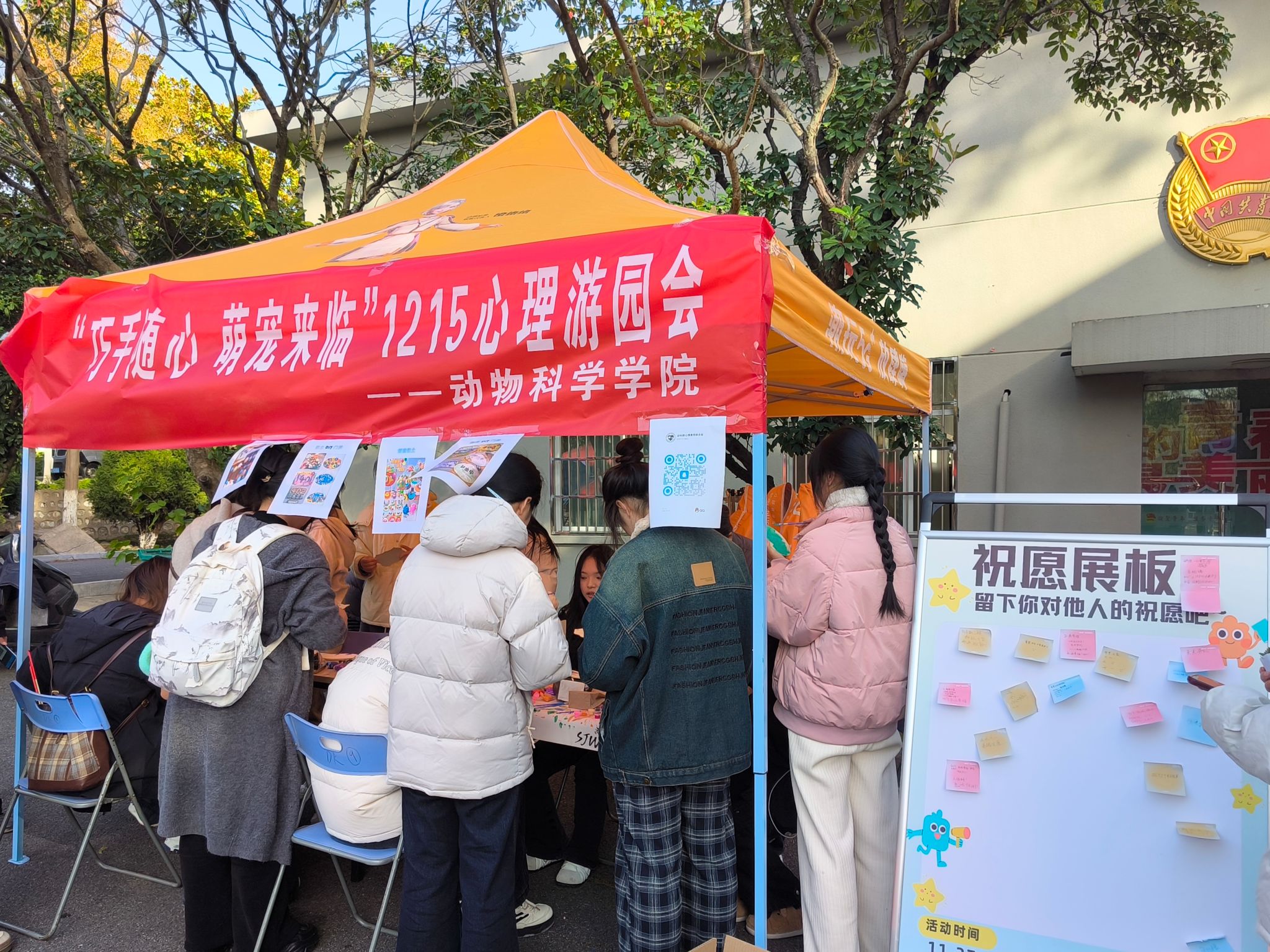 11月27日,动物科学学院“巧手随心,萌宠来临”心理游园会在五四广场拉开序幕,活动内容包括DIY黏土娃娃、DIY门牌、创造星球、粘土棒棒糖创意手工项目以及领养纸制小狗、玩偶合影等互动项目。在制作过程中,同学们充分发挥创造思维,制作出了一款款独特的作品,体验到了创作的乐趣和成就感。通过手工制作劳动体验,引导学生用双手感受美好事物,活动充分体现了劳动对心理健康的促进作用,有助于学生培养理性平和、积极向上、热爱生活的心理品质。