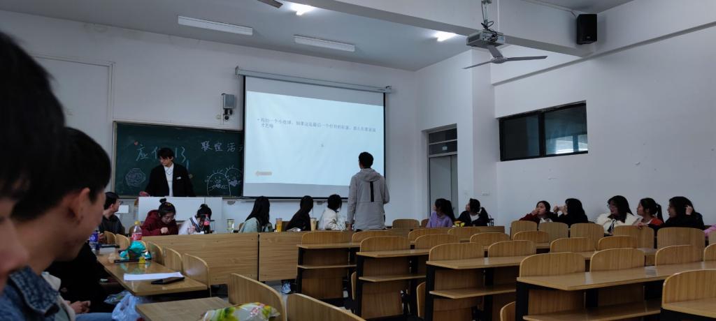 为丰富清明节假期学生活动,引导树立积极的心态应对疫情,4月3日下午,管理学院和化学与材料工程学院在致知楼A栋108教室开展了“小手一牵,两家联谊”活动,21级物流管理辅导员黄斐、应用化学专业辅导员沈竟成和相关专业学生参与本次活动。活动由应用化学213班班长皮瑛琦主持。