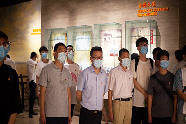 为推动深化党史学习教育,促使学生党员深入了解社会主义发展史和改革开放史,传承红色基因,弘扬“大包干精神”和“沈浩精神”,2021年6月13日,机械工程学院党委书记张严政、副书记张程、副处级辅导员开金苗(机电与机器人专业学生党支部书记)及辅导员张立亮(车辆与农业装备工程专业学生党支部组织委员)、孟凡生(机械与工业设计专业学生党支部组织委员),带领机械工程学院预备党员一行80余人,赴中国农村改革第一村——凤阳县小岗村,开展深化党史学习教育主题党日活动。