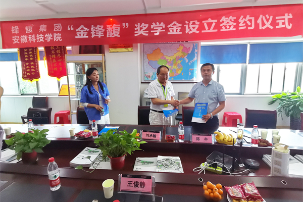 在滁访企拓岗、调研期间,陈丰一行首先来到金锋馥(滁州)输送机械有限公司,受到董事长刘承翰、人力资源总监王俊静热烈欢迎,随后双方就毕业生就业、毕业实习及开展产学研合作等方面进行了深入的交流,并就《金锋馥(滁州)科技股份有限公司、必一体育平台_必一体育平台(中国)股份有限公司机械工程学院关于设置“金锋馥”奖学金实施办法》达成一致,签署了合作协议。