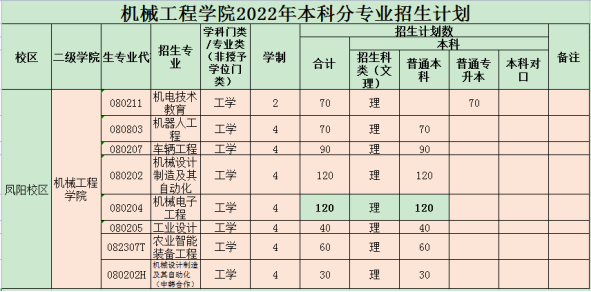 培养目标:本专业立足皖北,服务安徽,辐射长三角。本专业培养德智体美劳全面发展的社会主义建设者和接班人,掌握数学与自然科学基础知识,掌握机械、电子、控制、计算机等学科基础理论和专门知识,具备现代机电一体化技术应用能力,具备良好的学习能力、实践能力、创新能力,具有团队合作和创新意识,能够在机电行业及相关领域,特别是材料成型装备集成控制等领域从事设计制造、技术开发、工程应用、工程管理、技术服务等工作,富有社会责任感、高尚的职业道德和创业精神的高素质应用型专门人才。
