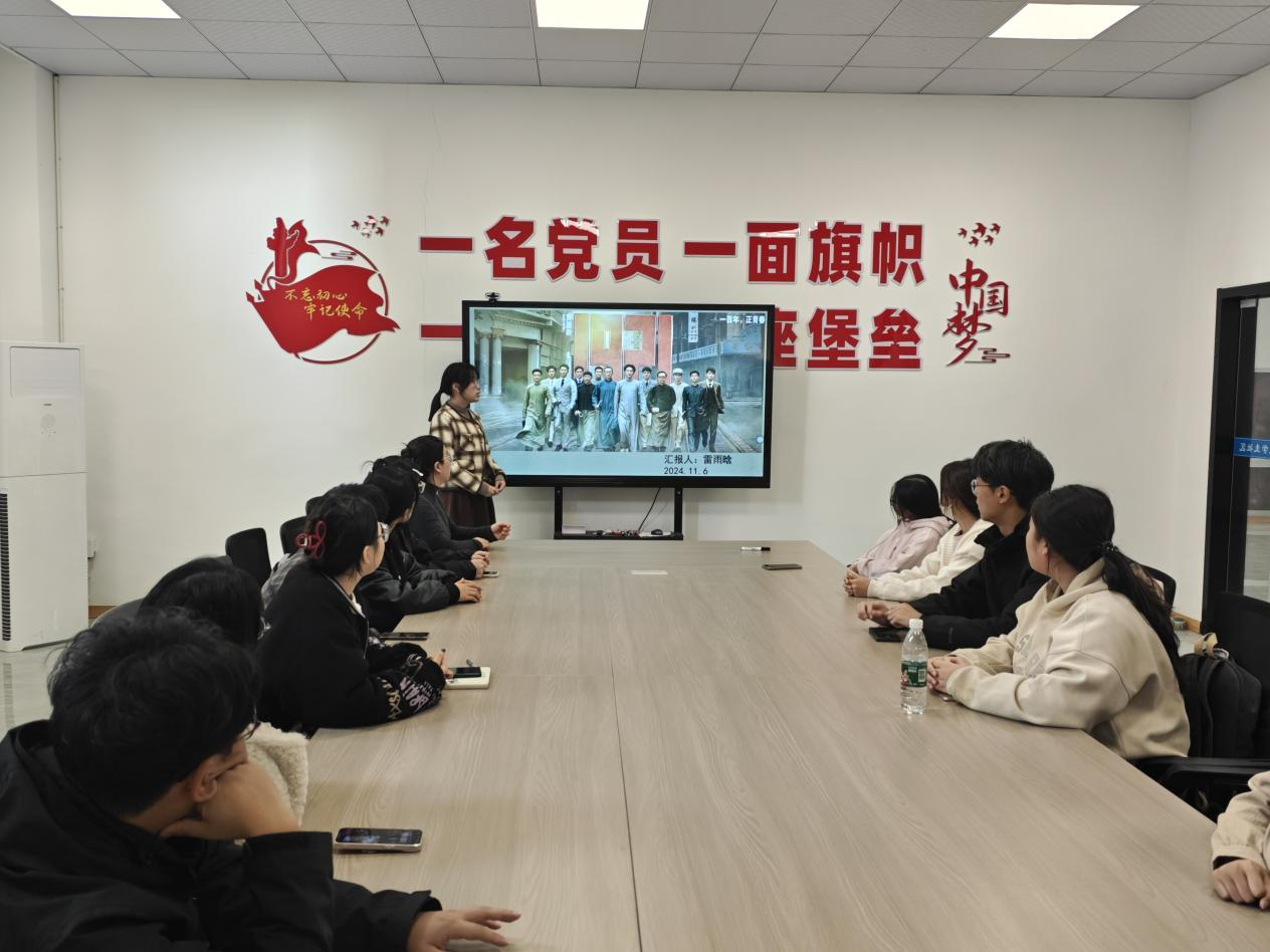 分享环节上,支部党员雷雨晗以图文结合的方式带领大家再次学习建党前后的历史。党员们纷纷踊跃发言,表达自己内心的触动。中共预备党员袁文艺员感慨道:“在我即将转正之前观看电影是对我的一次深刻教育。我看到了先辈们艰难建党的历程,也更加感受到自己生活的美好。作为青年一代,我们肩负着民族复兴的使命,要让革命精神、青春力量在新时代绽放新光彩。”中共正式党员刘苏倩表示:“这部电影让我对党的历史有了更直观的认识,每一个细节都体现出建党过程的艰难。作为新时代的党员,我们要以先辈为榜样,在学习和生活中发挥先锋模范作用,为实现中华民族伟大复兴贡献自己的力量。”