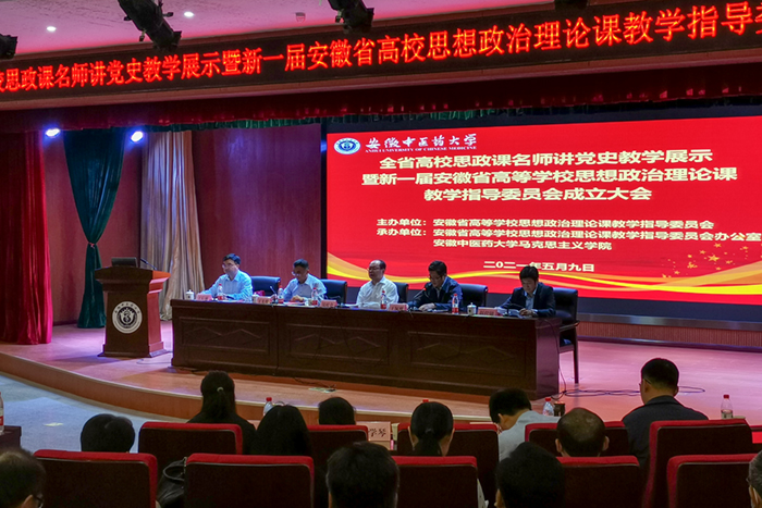 5月9日,全省高校思政课名师讲党史教学展示暨新一届安徽省高等学校思想政治理论课教学指导委员会成立大会在安徽中医药大学少荃湖校区召开。省委教育工委书记钱桂仑、副书记王佩刚,省委教育工委、省教育厅思政处负责人,教指委主任委员、安徽中医药大学领导出席成立大会。我校党委书记、安徽省高等学校思想政治理论课教学指导委员会副主任委员蒋德勤,马克思主义学院院长张德化,马克思主义学院王有炜教授应邀参加会议,大会开幕式由王佩刚主持。