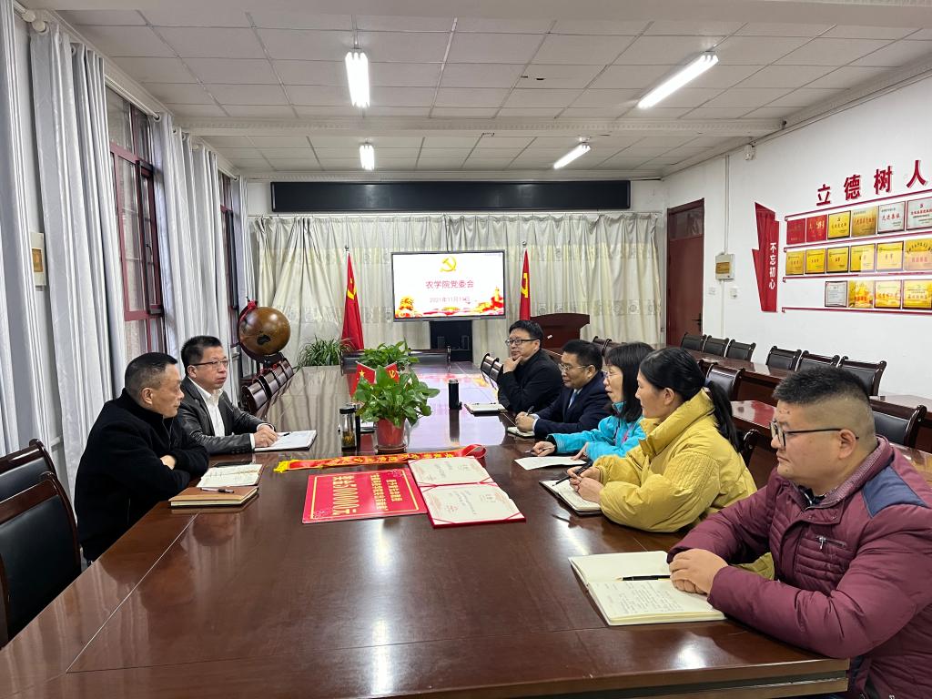 当天下午表彰大会之后,农学院党委书记何世潮主持召开向黄先忠同志学习的专题党委会议。何世潮首先传达了学校召开突出贡献奖表彰大会的会议精神,对黄先忠同志获得国家自然科学奖二等奖再次表示祝贺。何世潮要求在全院各单位、各支部、各班级深入开展向黄先忠同志学习,倡导科学家精神,要求广大教职工要以黄先忠为榜样,珍视教师职业荣誉和肩负的职责使命,始终保持热爱教育的定力、淡泊名利的坚守,将满腔热忱献给党和人民教育事业,奋力推进学院科技创新工作上层次、上水平。