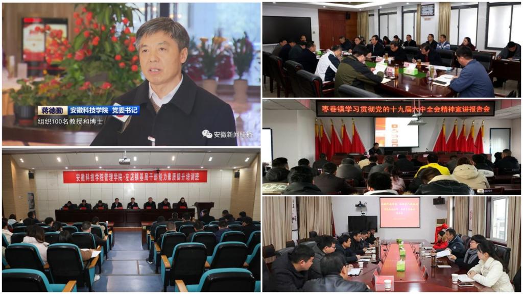 【综述】12月1日,我校在凤阳校区会议中心第一报告厅视频分会场,组织参加省委教育工委举办的学习贯彻党的十九届六中全会精神省委宣讲团宣讲报告会。省委宣讲团成员、安徽中医药大学党委书记王先俊教授作学习贯彻党的十九届六中全会精神宣讲,省委教育工委副书记、教育厅厅长赵振华在主会场主持报告会;12月7日,我校在凤阳校区新图书馆十楼会议室召开专题学习会,集中学习习近平总书记在全国宗教工作会议上的重要讲话精神。会议由校党委委员、副校长黄友锐主持;12月8日,校党委书记蒋德勤在凤阳校区大学生活动中心为动物科学学院、外国语学院、人文学院、马克思主义学院和机关党委、离退休党总支教职工和研究生、本科生代表作党的十九届六中全会精神宣讲报告;12月8日,校党委副书记、校长李震在龙湖校区图书馆东报告厅为建筑学院、财经学院和化学与材料工程学院教职工和研究生、本科生代表作党的十九届六中全会精神宣讲报告;12月9日,校党委委员、副校长黄友锐在凤阳校区会议中心第二报告厅为生命与健康科学学院、食品工程学院、体育教学部教职工和研究生、本科生代表作党的十九届六中全会精神宣讲报告;12月15日,校党委委员、副校长黄远友在龙湖校区图书馆东报告厅为信息与网络工程学院、电气与电子工程学院、管理学院教职工和研究生、本科生代表作党的十九届六中全会精神宣讲报告;12月15日,校党委委员、副校长李升和在凤阳校区会议中心第二报告厅为农学院、资源与环境学院、机械工程学院教职工和研究生、本科生代表作党的十九届六中全会精神宣讲报告。
