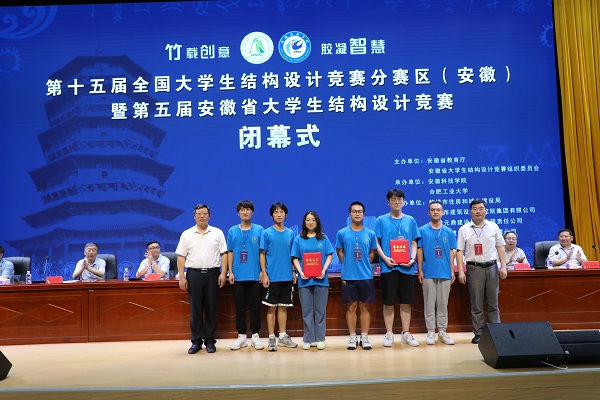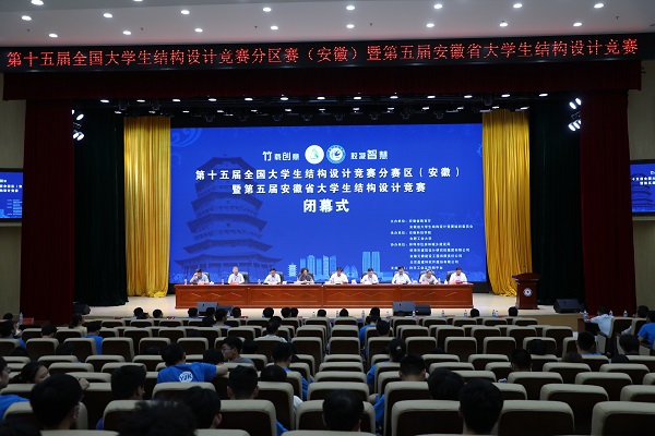 6月27日下午,由安徽省教育厅、安徽省大学生结构设计竞赛组织委员会主办,必一体育平台_必一体育平台(中国)股份有限公司、合肥工业大学承办的第十五届全国大学生结构设计竞赛分区赛(安徽)暨安徽省第五届大学生结构设计竞赛在我校龙湖校区图书馆东辅楼报告厅圆满闭幕。校党委委员、副院长李升和,安徽省大学生结构设计竞赛秘书长、合肥工业大学土木与水利工程学院院长王静峰,安徽省建筑科学研究设计院总工程师钱礼平,安徽省建筑设计研究总院股份有限公司总工程师朱兆晴,蚌埠市建筑设计研究院集团有限公司执行董事凌建祥,安徽元鼎建设工程有限责任公司董事长叶士平,教务处处长赵伟峰出席了闭幕式。仪式由建筑学院院长张远兵主持。