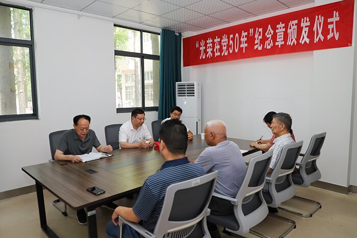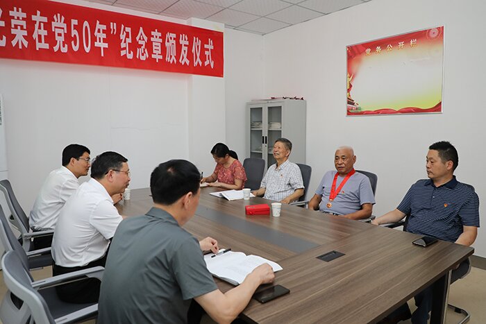 7月1日上午,在喜迎中国共产党建党101周年之际,离退休党总支举行庄重简朴的“光荣在党50年”纪念章颁发仪式,党委委员、副院长黄远友,党委委员、组织部长钱锐等出席会议,颁发仪式由离退休党总支书记时乾主持,离退休党总支委员、在职党员等参加颁发仪式。