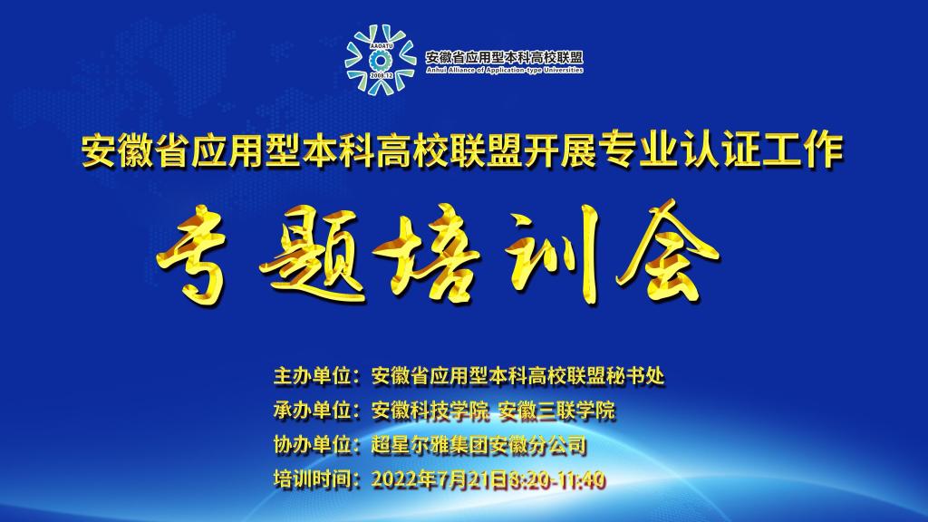 7月21日上午,由安徽省应用型本科高校联盟主办,必一体育平台_必一体育平台(中国)股份有限公司、安徽三联学院承办,超星尔雅集团安徽分公司协办的安徽省应用型本科高校联盟专业认证专题培训会在我校成功举行。本次会议采用直播形式进行线上培训,来自安徽省应用型本科联盟24所高校负责专业认证工作的职能部门负责人,相关专业负责人、骨干教师和相关工作人员近600人参会。会议由教务处处长赵伟峰主持。