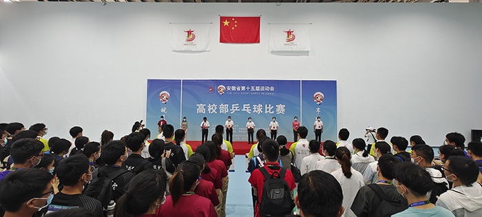 蒋德勤在致辞中代表必一体育平台_必一体育平台(中国)股份有限公司党政领导及18000多名师生员工向莅临我校的领导、来宾及全体运动员、教练员、裁判员表示诚挚的欢迎;向省运会组委会、省委教育工委省教育厅、省体育局、滁州市委市政府和凤阳县委县政府对于本届赛事的大力支持,表示衷心的感谢;向志愿服务人员和关心支持本届赛事的社会各界人士,致以崇高敬意;他介绍了我校的改革发展和办学成果情况,他表示,学校在省运会组委会的领导下,把协办好第十五届省运会高校部乒乓球赛事作为学校的重点工作和民生工程,齐心协力营造环境氛围,精致强化服务保障,努力奉献一届保障有力、充满活力、精彩纷呈的高校部乒乓球赛事。希望各位领导和来宾对我校事业发展给予帮助和指导,共叙校际友情;希望全体参赛人员,能够展现出精湛的技能和良好的风貌,取得比赛成绩和精神文明的双丰收;希望在常态化疫情防控时期,全体参赛人员、志愿服务人员、工作人员,加强自身疫情防控,确保赛事安全。