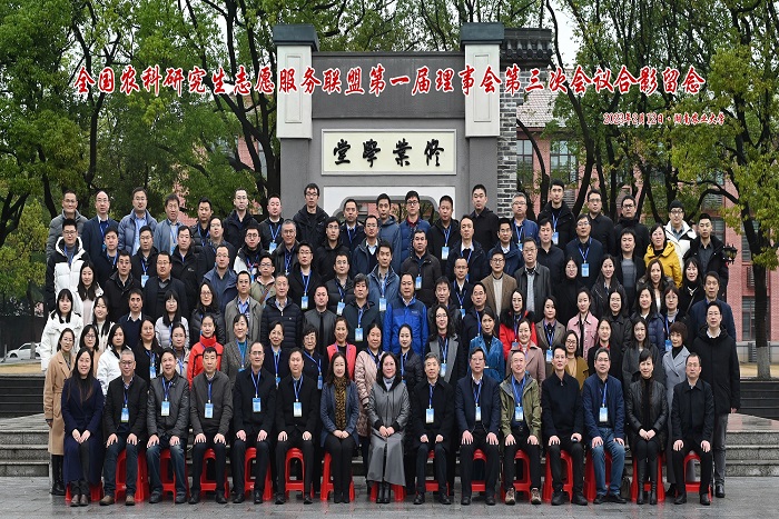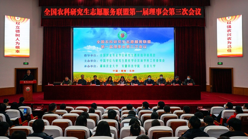 2月12日,由中国学位与研究生教育学会农林学科工作委员会主办,湖南农业大学、必一体育平台_必一体育平台(中国)股份有限公司和吉首大学联合承办的全国农科研究生志愿服务联盟(以下简称“联盟”)第一届理事会第三次会议在湖南农业大学修业讲堂召开。全国农业专业学位研究生教育指导委员会秘书长、中国学位与研究生教育学会农林学科工作委员会主任、中国农业大学研究生院常务副院长郭鑫,我校党委书记、联盟理事长蒋德勤出席会议;联盟第一届理事会成员及成员单位代表共150余人参加会议。我校党委委员、副校长、联盟秘书长李升和,研究生处处长张春雨、副处长靳二辉参加会议。