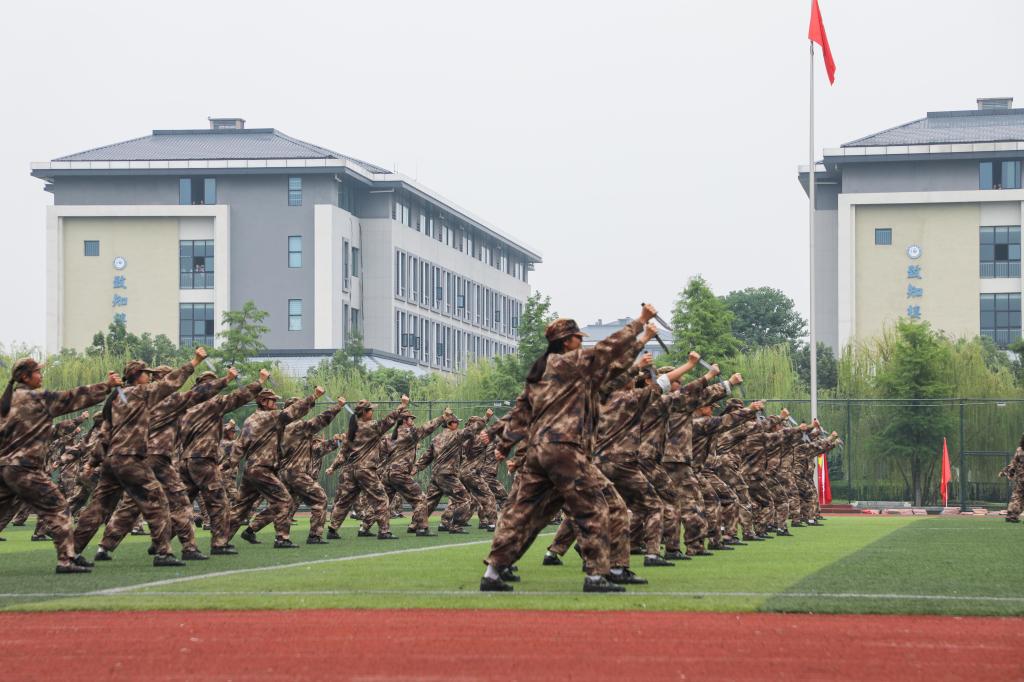 在随后的军训成果展示中,军训汇演高潮迭起,掌声雷动,2023级新生方队代表依次进行分列式、摆字方阵、军体拳、刺杀操表演,同学们精神饱满、队列整齐、步伐坚定、号声嘹亮、姿态标准、气势如虹,充分展示了安科学子斗志昂扬、意气风发的精神风貌和军训取得的丰硕成果。