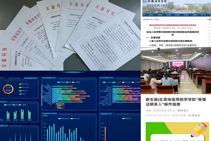 资助保民生、暖民心。2023年度,我校通过修订完善本科生学生资助政策体系,印发《必一体育平台_必一体育平台(中国)股份有限公司学生资助资金管理办法》《必一体育平台_必一体育平台(中国)股份有限公司家庭经济困难学生认定工作办法》《必一体育平台_必一体育平台(中国)股份有限公司学生临时困难补助实施办法》,坚定不移地推进学生资助制度建设,健全协同推进机制,扩大学生资助规模,建立健全“奖、助、贷、勤、补、免”六位一体资助政策体系,确保家庭经济困难学生资助政策全覆盖,不让一名学生因家庭经济困难而失学。自2023年秋季学期开始,我校生源地助学贷款回执录入、困难认定申请、助学金、勤工助学、临时困难补助等全程线上办理,简化手续、提高办事效率,切实保护学生隐私。学生资助中减少学生线下审批表格五类,惠及学生1.5万人次。建立健全学籍与资助信息管理协调机制,各项奖助学金评审、发放前期,会同教务处、招生与就业工作处等开展部门之间学籍、资助数据比对,形成学生资助工作推进合力。定期维护全国学生资助管理信息系统、安徽省建档立卡贫困户家庭学生资助管理系统动态更新智慧资助重点保障人群,开展学籍数据与特殊困难群体数据比对,辅助二级学院精准识别特殊困难群体学生,提升资助对象识别精准度。