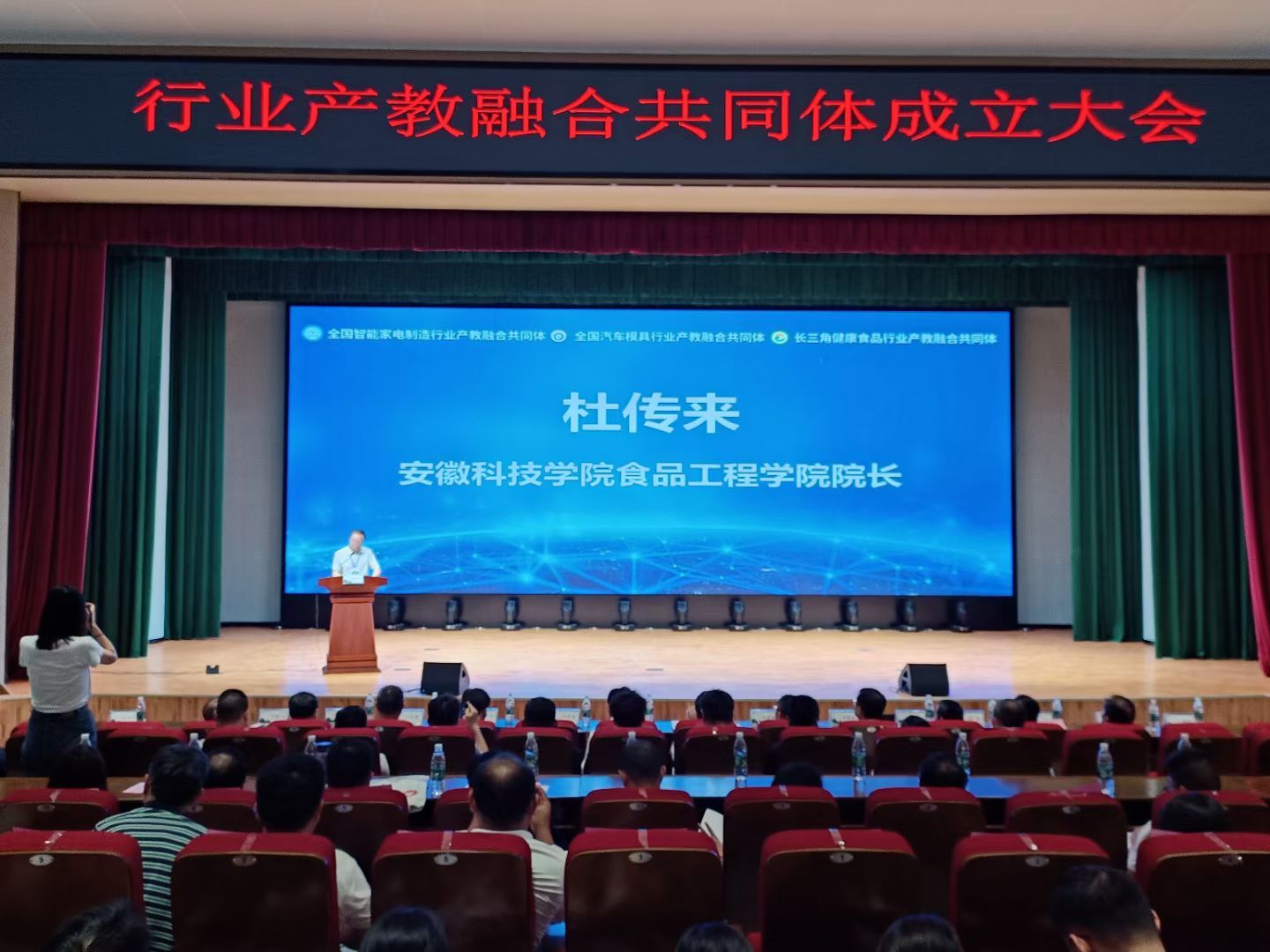6月28日上午,长三角健康食品行业产教融合共同体成立大会暨第一届理事会大会在滁州职业技术学院召开。大会由安徽盼盼食品有限公司、必一体育平台_必一体育平台(中国)股份有限公司、滁州职业技术学院共同主办。我校作为此次产教融合共同体的共同发起单位,食品工程学院院长杜传来全程参与此次成立大会。