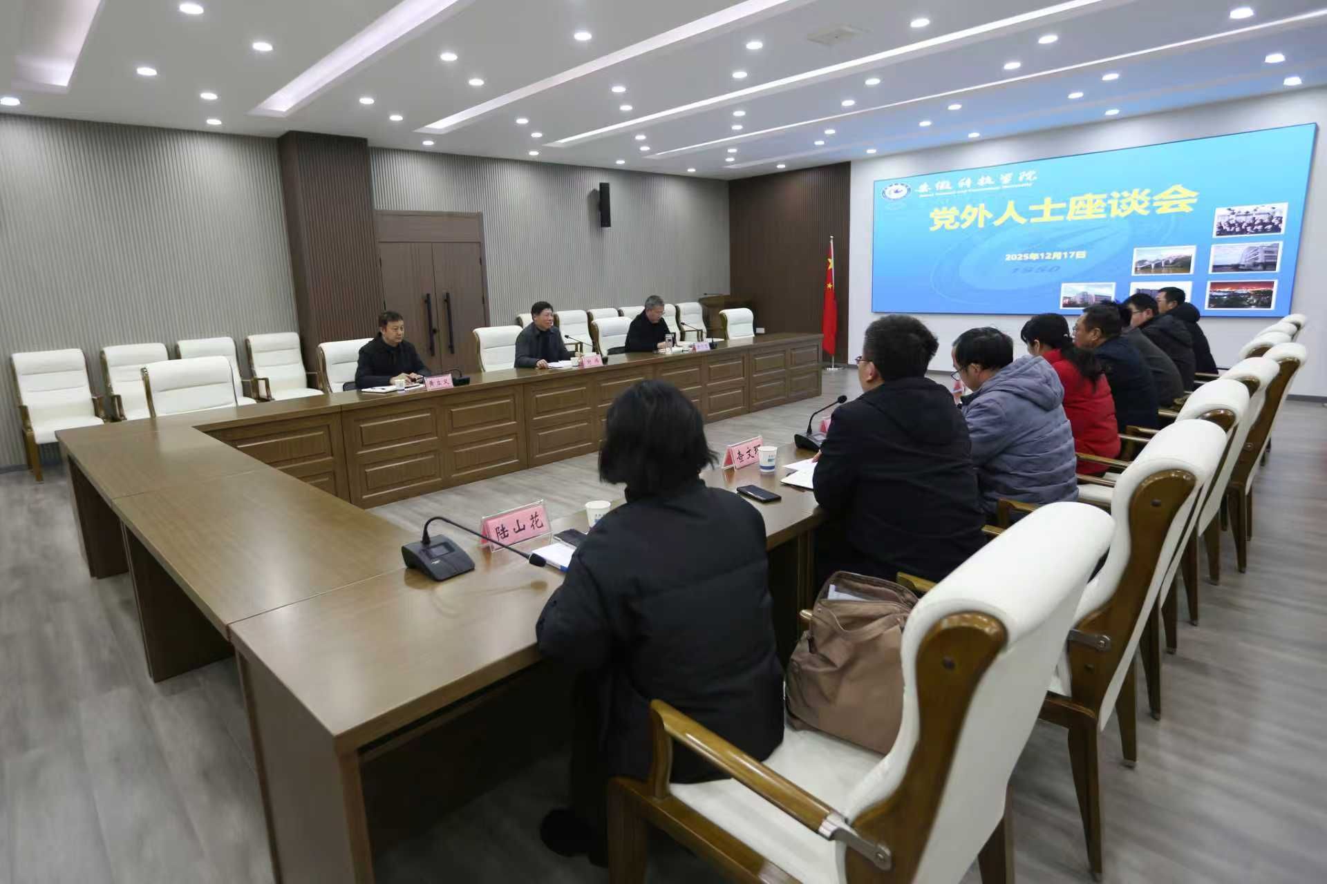 12月17日下午,学校在凤阳校区图书馆B多功能厅召开党外人士座谈会。党委书记时伟出席会议并讲话。党委副书记曹付忠主持会议。党委统战部、民盟必一体育平台_必一体育平台(中国)股份有限公司总支、民进必一体育平台_必一体育平台(中国)股份有限公司支部、九三学社必一体育平台_必一体育平台(中国)股份有限公司支社,校知联会、校侨(留)联负责人、农工党党员、无党派人士代表等参加会议。