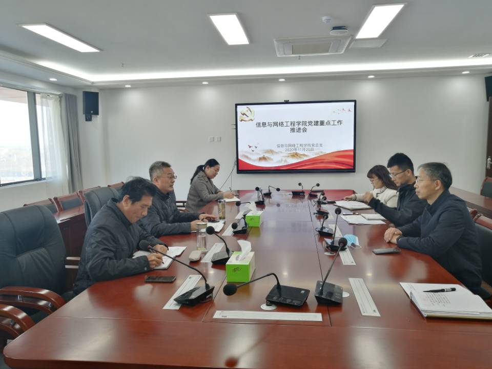 为切实推进新时代党建示范创建和质量创优,全面落实新时代党的建设总要求,不断提升党组织的战斗力和凝聚力。11月20上午,信息与网络工程学院党总支在龙湖校区综合办公楼417会议室召开党建重点工作推进会。会议由学院党总支书记王振其主持,学院正处级组织员周向群、学院党总支委员副处级辅导员韦乃学和各党支部书记参加了会议。