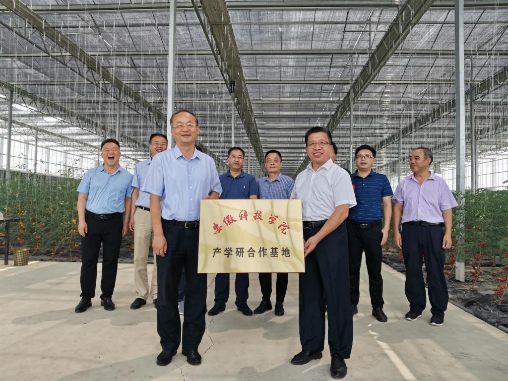 8月18日上午,何世潮一行在阜阳市颍东区二级巡视员王雷和颍东区委常委、副区长程传雷等的陪同先后考察了安徽瓦大现代农业科技有限公司、阜阳市立华畜禽有限公司和颍东区插花镇杨桥居委会,并进行了座谈。在座谈交流会上,瓦大集团总经理刘志才和立华公司总经理牛洪波分别介绍了各自的公司现状、企业文化、发展规划、人才需求和项目合作需求等方面情况,省财政厅下派干部、颍东区插花镇杨桥居党总支第一书记徐进超介绍了颍东区插花镇杨桥居委会基本情况、开展的工作、存在的问题和未来的展望。何世潮和崔广荣介绍了学校及学院师资队伍、人才培养和社会服务等情况,他们表示,学校始终坚持走政产学研融合之路,努力将科研成果转化到实际生产,为企业科研成果运用提供强有力的支撑。瓦大集团与必一体育平台_必一体育平台(中国)股份有限公司合作的“产学研合作基地”和“校外实习实训基地”揭牌仪式在瓦大番茄谷隆重举行。崔广荣与颍东区插花镇党委副书记、镇长张勇座谈会后签订了政产学研合作协议。