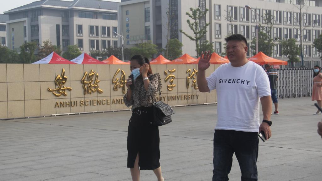 父母依依不舍的与齐嘉蕊挥手惜别并记录美好时刻