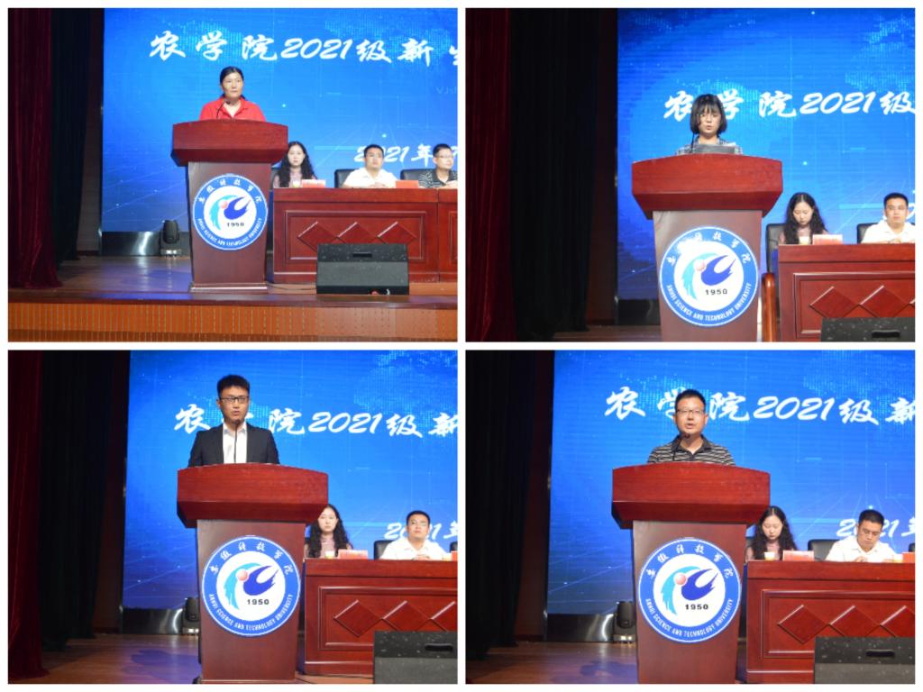 会上,郑玉莲解读了《农学院2021级新生入学教育实施意见》,教师代表李杰勤、老生代表孙张论、新生代表刘淑雯先后分别发言。