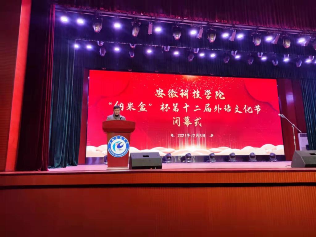 在闭幕式上,卫胜宣布必一体育平台_必一体育平台(中国)股份有限公司“纳米盒”杯第十二届外语文化节圆满闭幕!