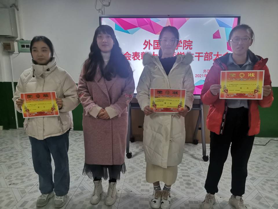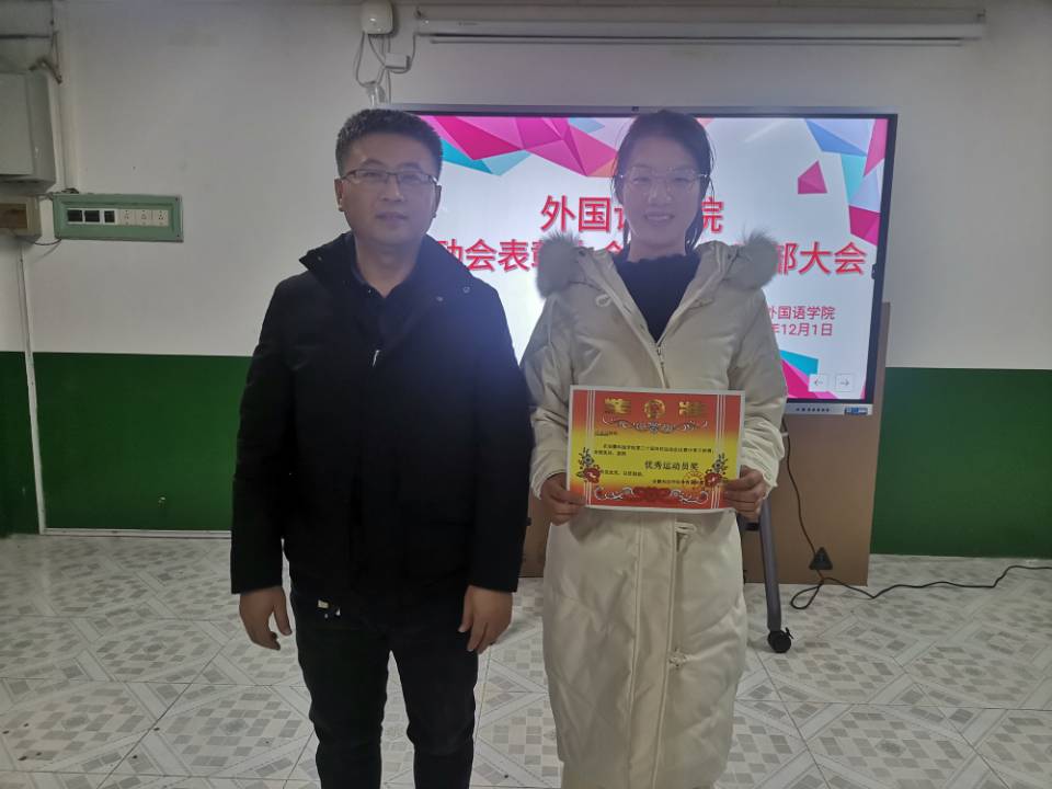 在干部大会上,陈慧中、宋兵兵、张薇薇分别布置了各自分管的工作,如:奖学金使用管理、安科E创项目申报、安全稳定、疫情防控、学风建设、意识形态、外语文化节闭幕式晚会、学籍异动等内容。在表彰会议上,与会老师们为获奖运动员颁发奖状并合影留念。宋兵兵宣读了《外国语学院学生在必一体育平台_必一体育平台(中国)股份有限公司第30届运动会的通报表扬名单》,张薇薇宣读《外国语学院在校第30届运动会中获奖运动员名单》,院学生会执行主席桂纪昌对本次校运动会进行了总结发言。