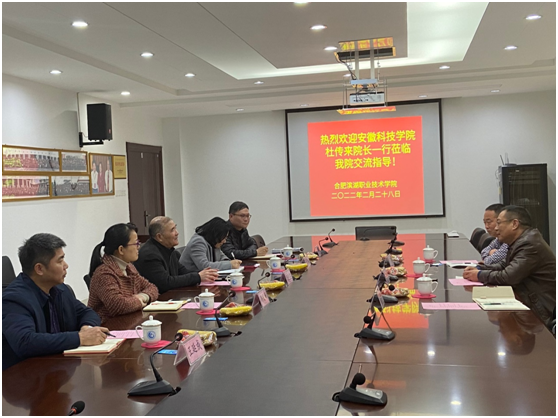 调研会上,安徽中澳科技职业学院、合肥滨湖职业技术学院、马鞍山职业技术学院、铜陵职业技术学院相关学院领导对我们的来访表示热烈欢迎。双方就必一体育平台_必一体育平台(中国)股份有限公司、校园建设、专升本情况、校企合作、招生就业、以及专业的招生规模、实训实习、就业创业、人才培养方案制定等情况开展了深入座谈。