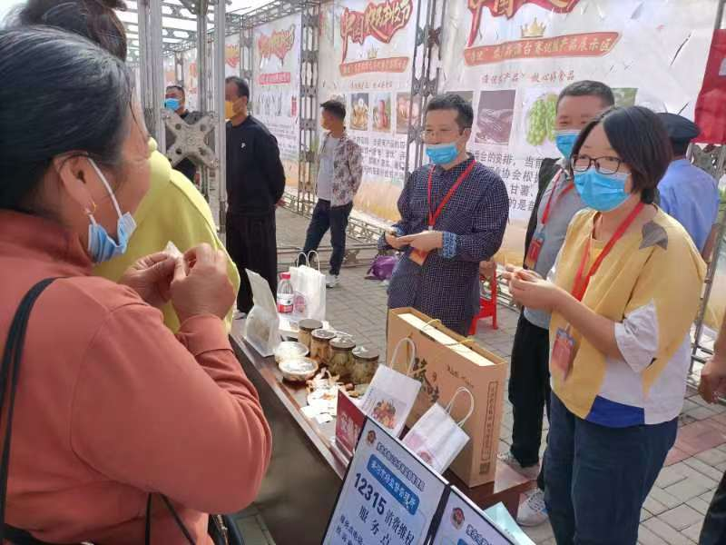 张献领、桑宏庆一行在展台上展示了我院学科团队研制的绿色食品。高校科研产品参展引来许多参会单位和群众围观,他们纷纷驻足询问,品尝新产品,探讨合作方式,张献领、桑宏庆等人给予了详细的介绍,对合作意向一一进行了深入交流,赢得了普遍好评。
