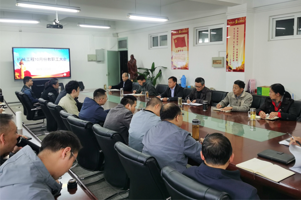 为推动全体教职工深入学习贯彻党的二十大精神,持续推进学院各项重点工作,高质量完成年度目标任务,2022年10月26日下午,机械工程学院在笃行楼409会议室召开10月份全体教职工大会。会议由党委书记、院长陈丰主持。