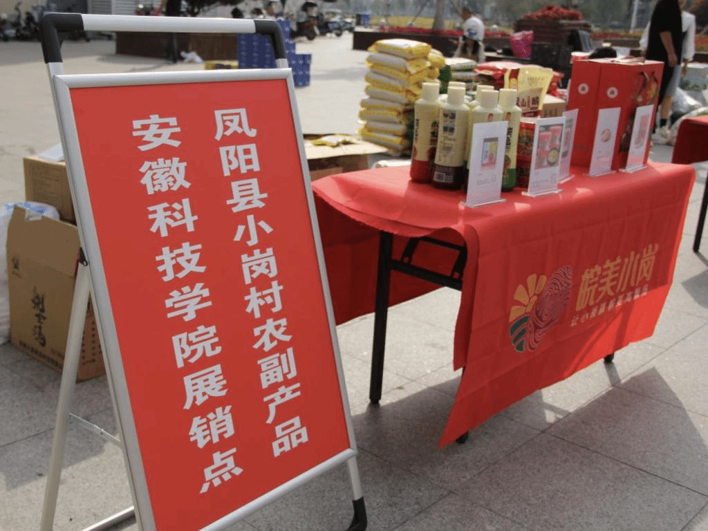 10月25日上午9点,我校龙湖校区成功开展小岗村绿色农副产品进校园展销活动。此次活动是小岗村农副产品在龙湖校区的“首秀”,活动在我校天河湖餐厅西门小广场举行。