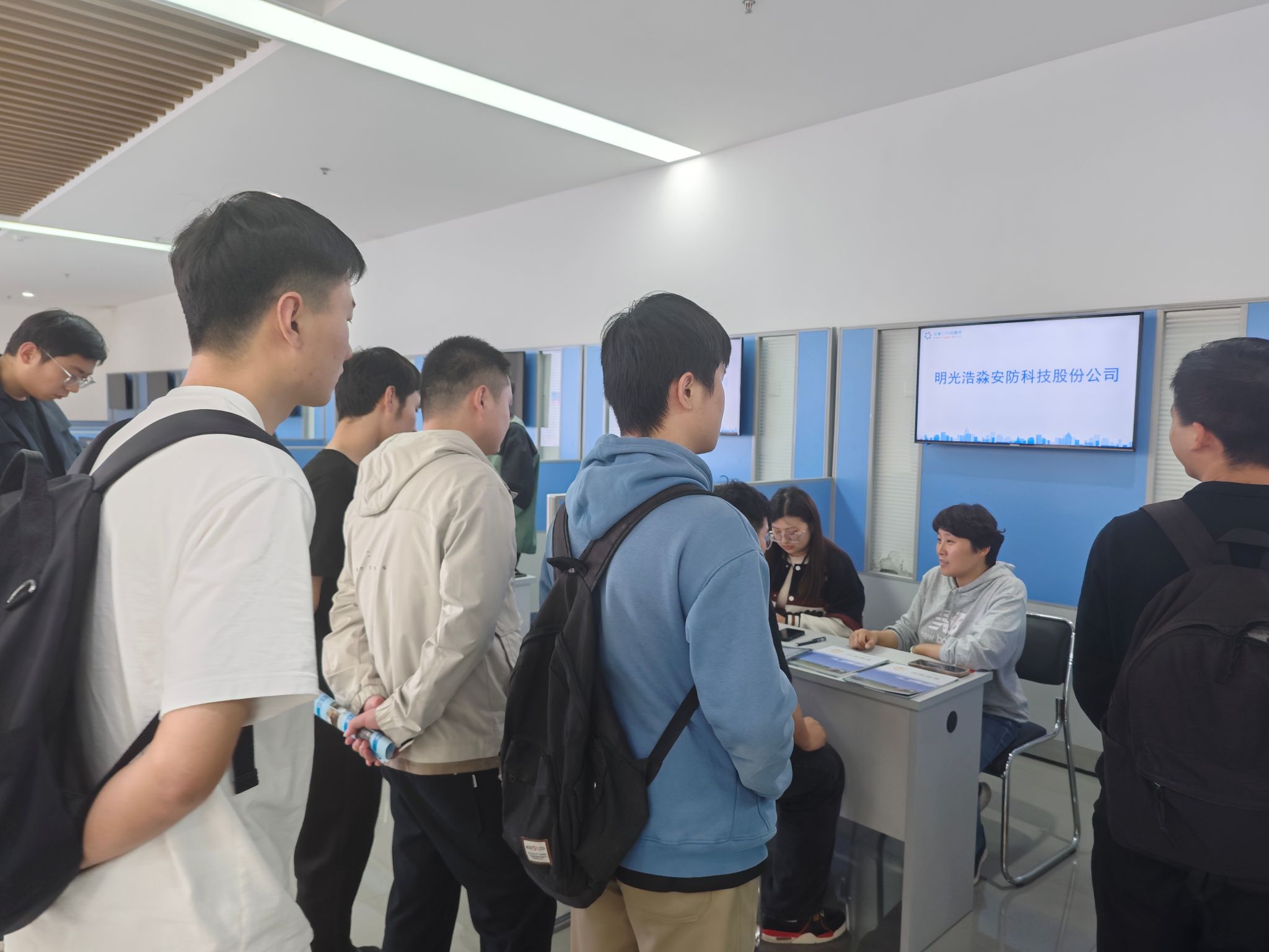 求职毕业生在明光市委组织部人才办工作人员孟旭和明光市经开区徐乃田的带领下先后实地参观了安徽占一科技有限公司、明光三友电力科技有限公司、安徽哥伦布智能科技有限公司、明光浩淼安防科技股份公司,在明光市人力资源和社会保障局一楼集中面试,现场4名毕业生同用人单位达成就业意向。