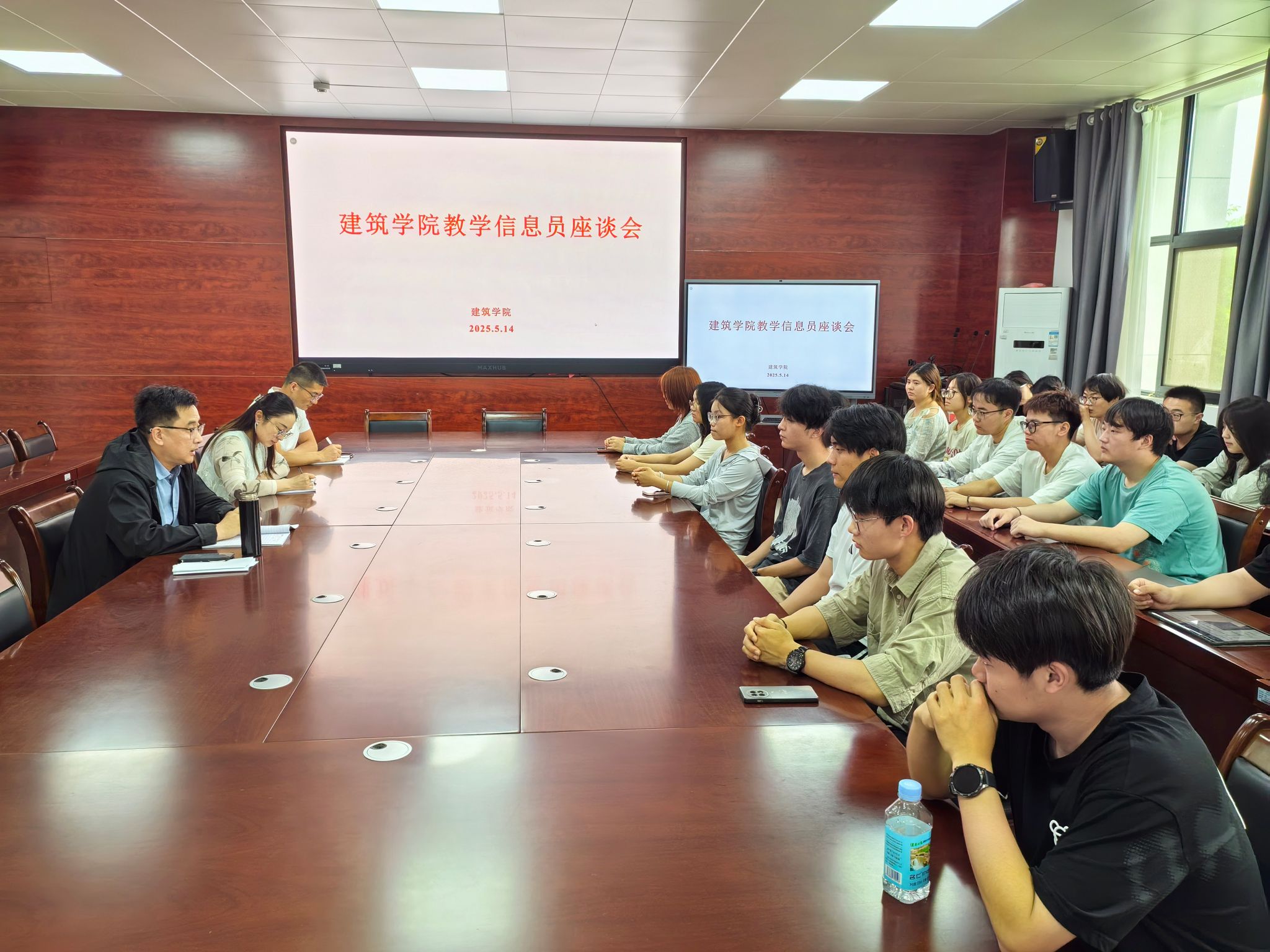 5月14日中午,建筑学院在龙湖校区尚行楼A301会议室,召开教学信息员会暨师生座谈会。学院相关教师和全体教学信息员参加会议,副院长吴伟东出席并主持会议。